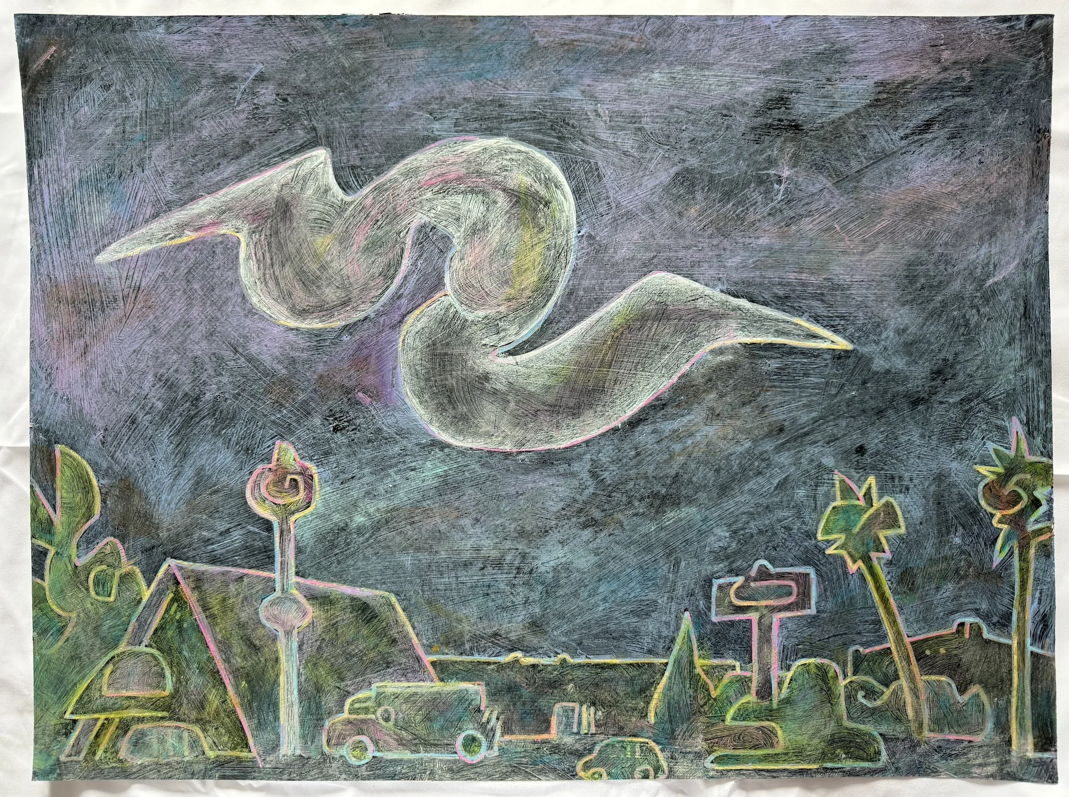Los Angeles 8-24-2024 / Acrylic on 300lb paper / 18” H x 24” W